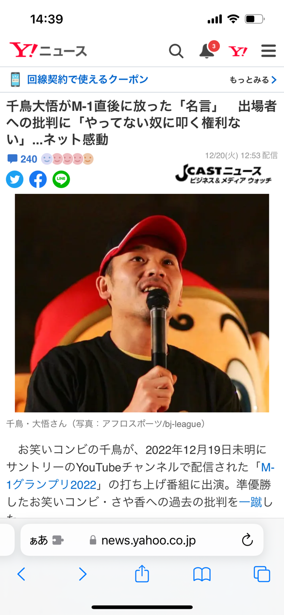 千鳥大吾「M-1に参加してもない奴らが漫才師を叩く権利ない」