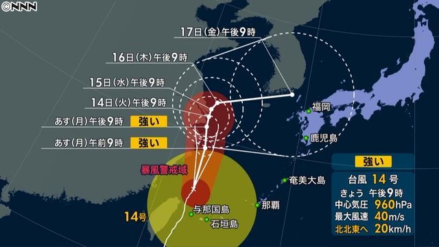 強い台風14号、沖縄では高波に警戒を