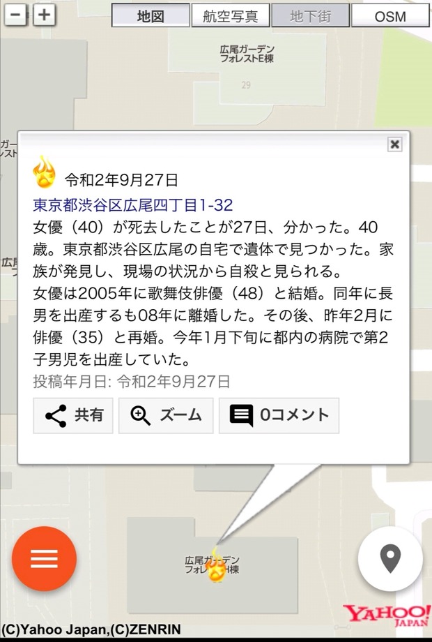 【画像】竹内結子さんのマンションが早くも大島てるに登録されるwwwwwwwwwww
