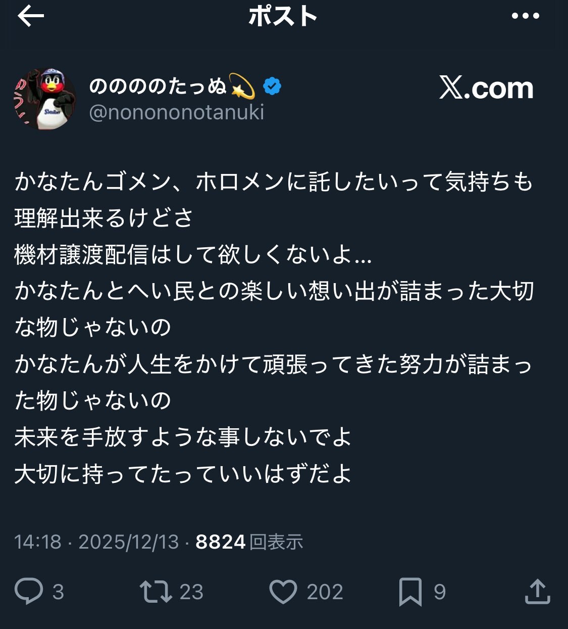 天音かなた「完全に辞めるから配信機材ホロメンにあげたい」