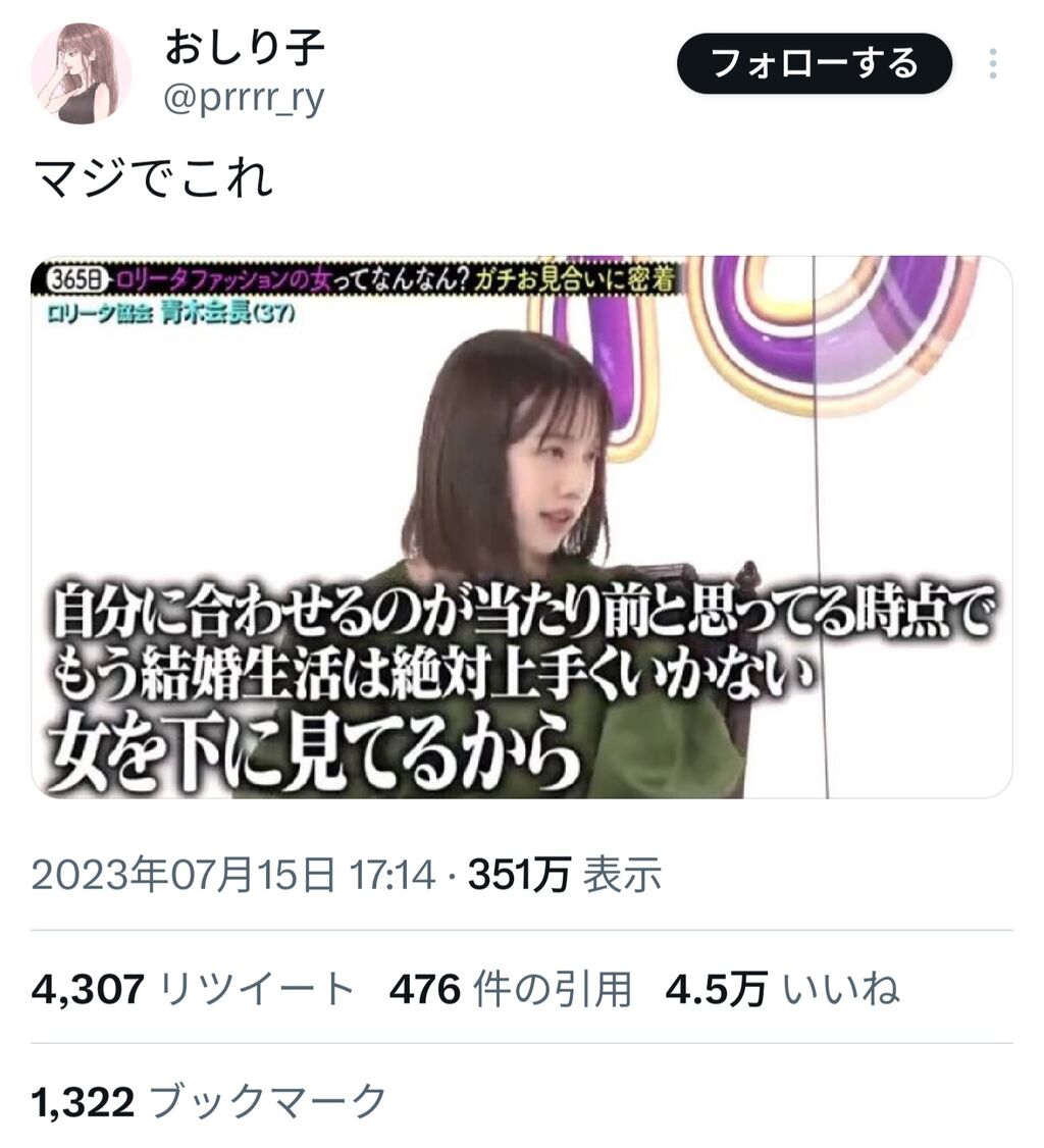女さん「女を下に見てる男との結婚は絶対上手くいかない」4.5万いいね