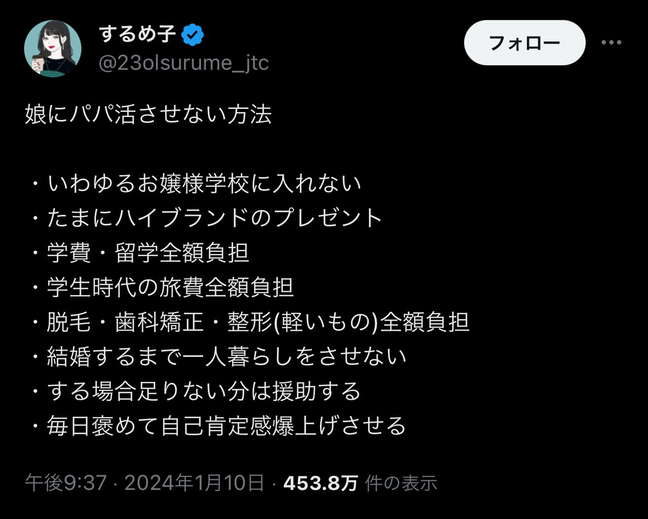 女さん「娘をパパ活女子にさせないための方法はこれです。男は必ず守ってください」4.6万いいね