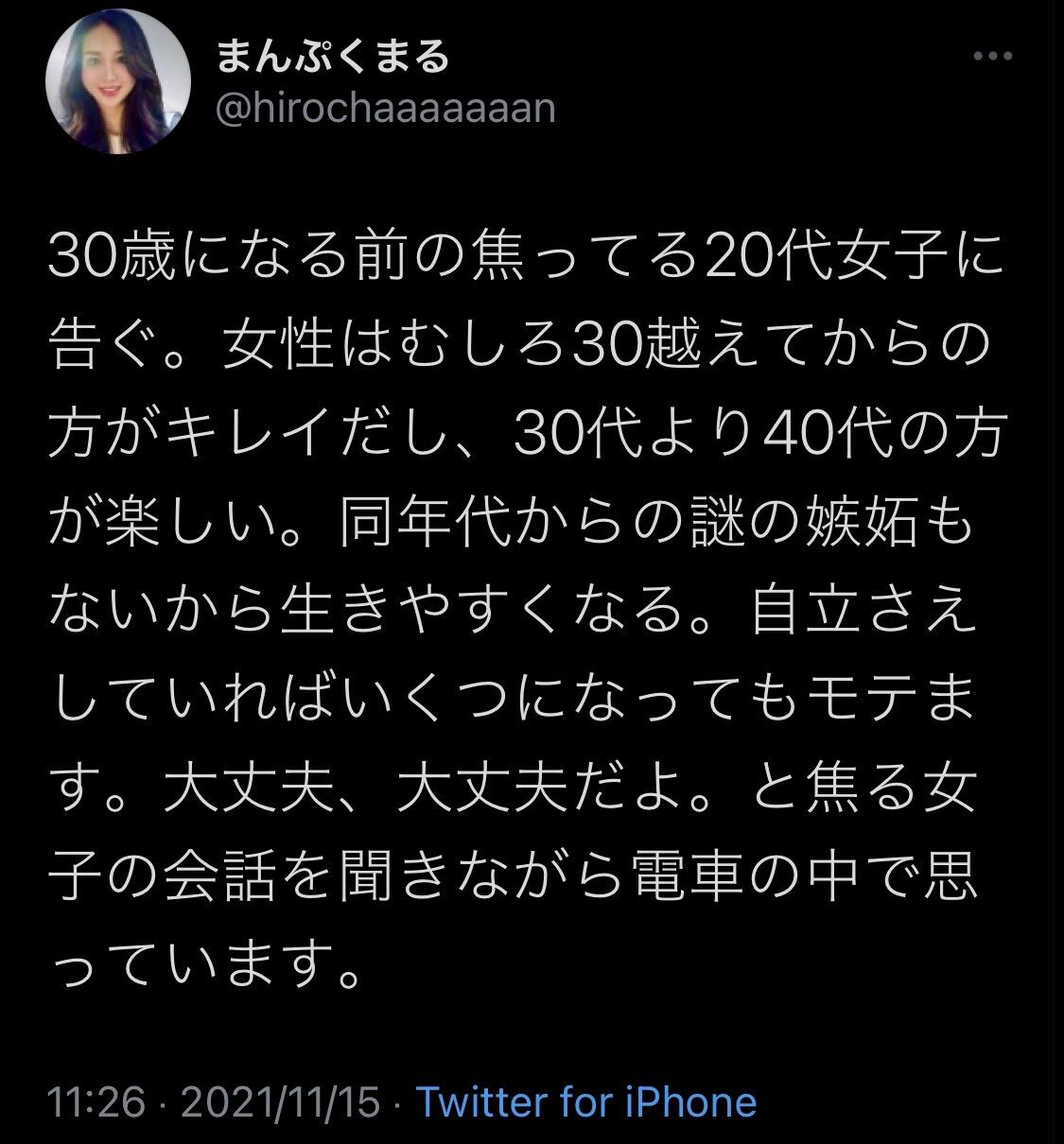 女性「20代女子に告ぐ。女性はむしろ30越えてからのほうが綺麗。自立してればいくつでもモテます」