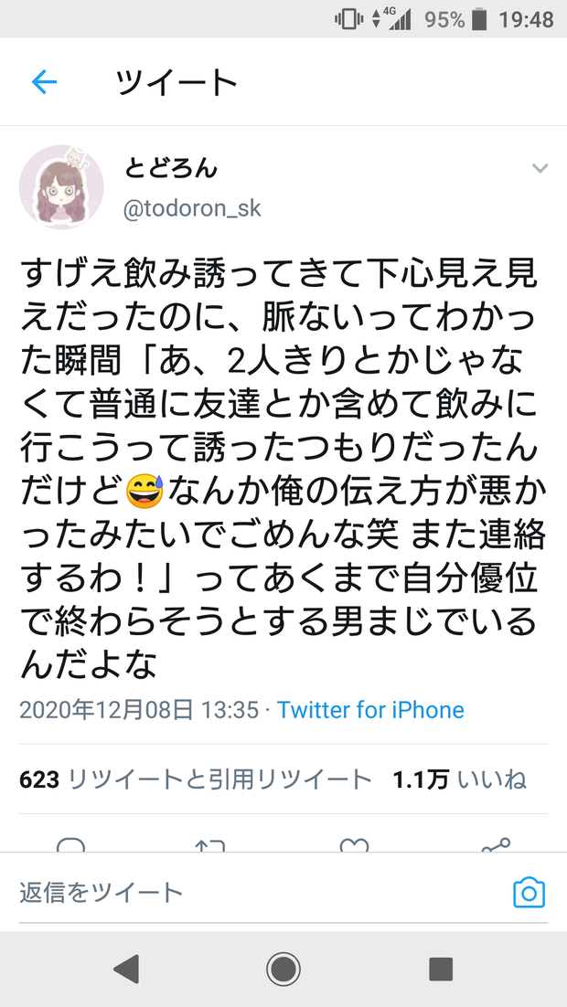 Twitter「下心丸出しだったくせに脈なし分かると自分優位に終わらせようとする男きも」
