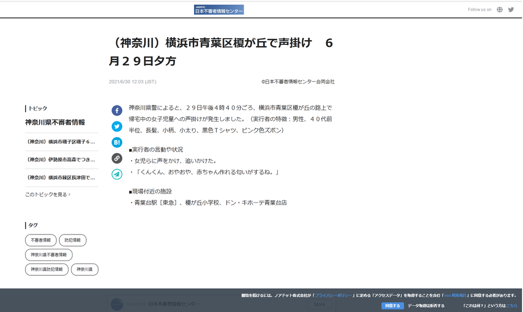 「くんくん、おやおや、赤ちゃん作れる匂いがするね」 下校中の女児に声掛け事案