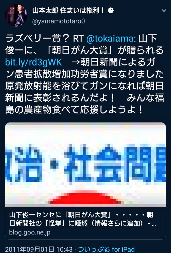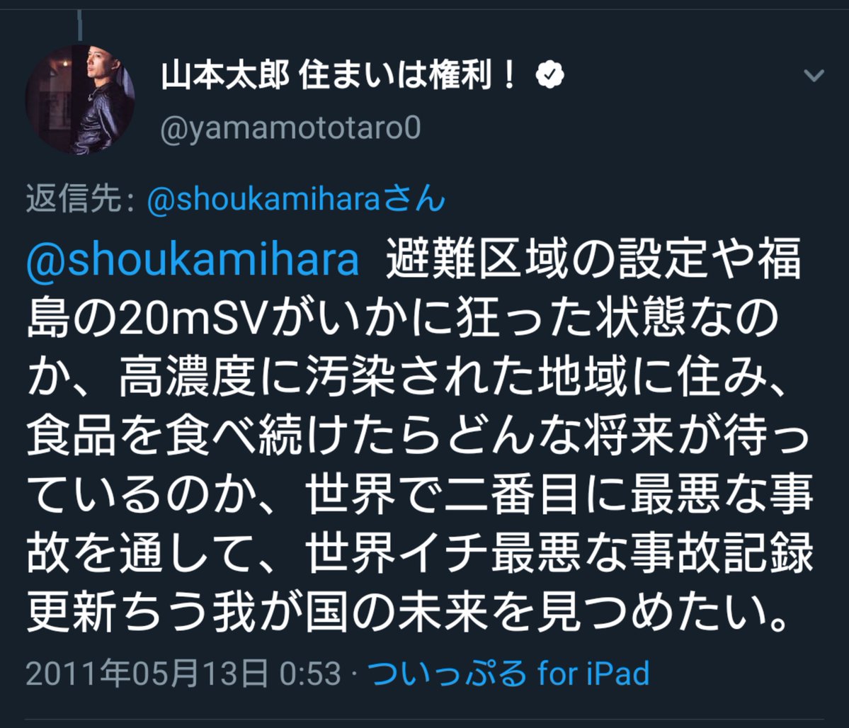 【過去の被曝に対する発言について】私が政治家になる前、過去の被曝などに関する発言で、配慮が足りないものがあったことは事実です。当時、自分自身がどのように考えていたのか。https://t.co/g1caLPT3in— れいわ 山本太郎 消費税廃止!住まいは権利! (@yamamototaro0) March 13, 2021転載元スレッド:http://hayabusa3.2ch.sc/test/read.cgi/news/1615800570/