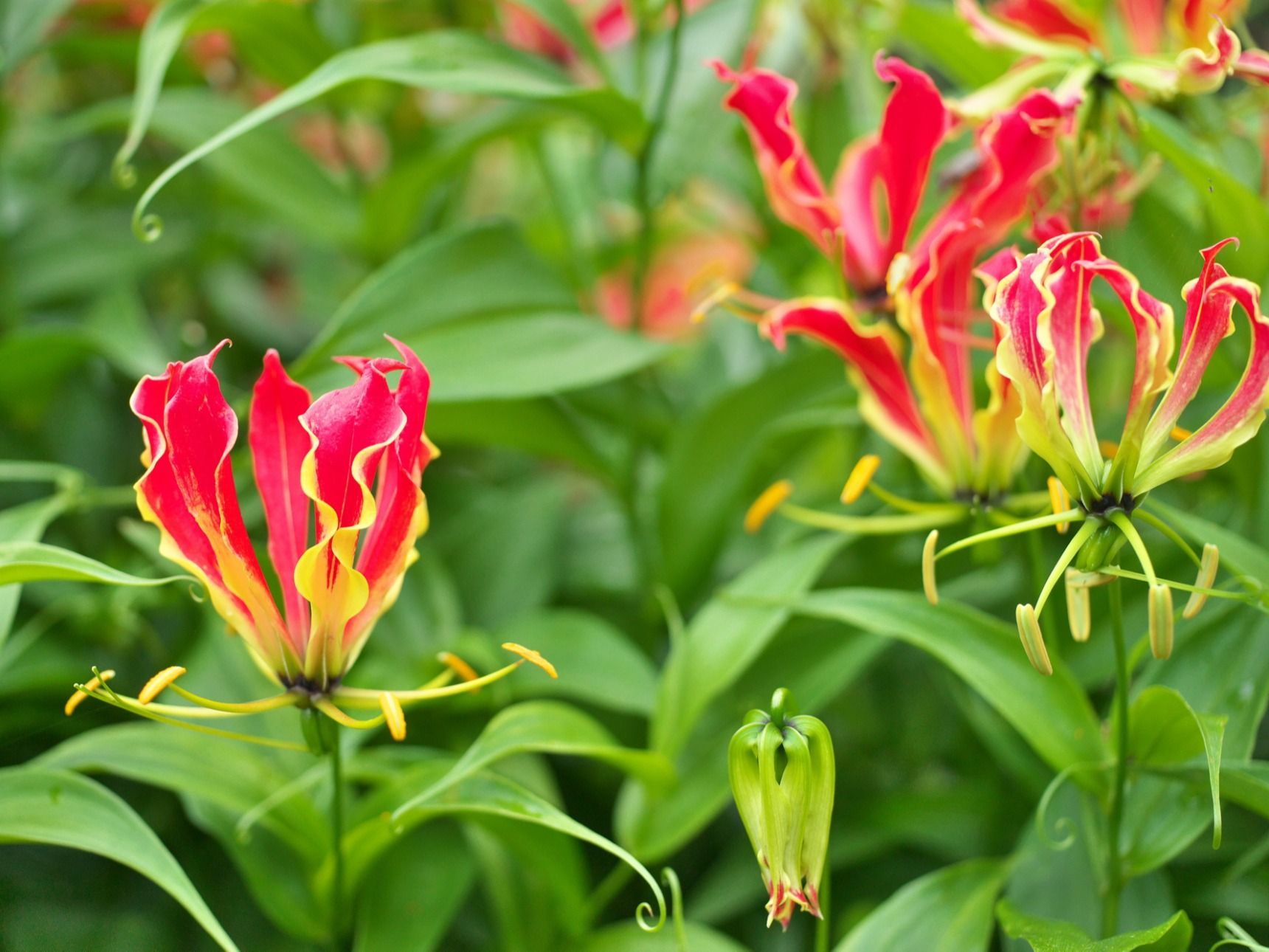 1 名前:名無しさん@おーぷん[] 投稿日:23/04/06(木) 18:05:55 ID:fRiT彡(〇)(〇)「・・・」グロリオサは,アフリカ,アジアの熱帯地域に分布するユリ科の球根植物です。グロリオサは,全草にコルヒチンを含有し,特に球根に多く含みます。コルヒチンは,摂取後,数時間以降に,口腔・咽頭灼熱感,発熱,嘔吐,下痢,背部疼痛などが発症し,臓器の機能不全などにより,死亡することもあります。致死量は0.8mg/kg(体重50kgの成人で40mgの摂取量)とされています。グロリオサの地上部は,葉の巻ひげや反転する花弁に特徴があるので,識別が容易ですが,球根は,ヤマイモなど食用のイモ類と似ています。ヤマイモは山野や庭などに自生しており,地上部が枯れても,イモが土の中に残るうえ,グロリオサの球根と収穫の時期も重なるので,十分な注意が必要です。