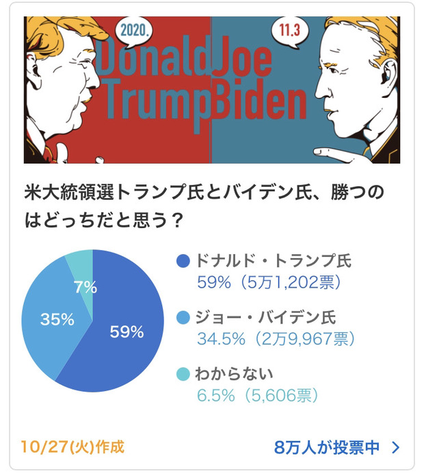日本の若者はバイデン支持が多数派に バイデン支持64% トランプ支持35%