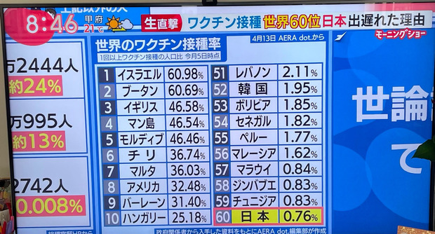 日本人、ワクチン接種ランキングを見てついに気付く 「うっそだろジンバブエ以下て…本当に豊かな先進国なのか」