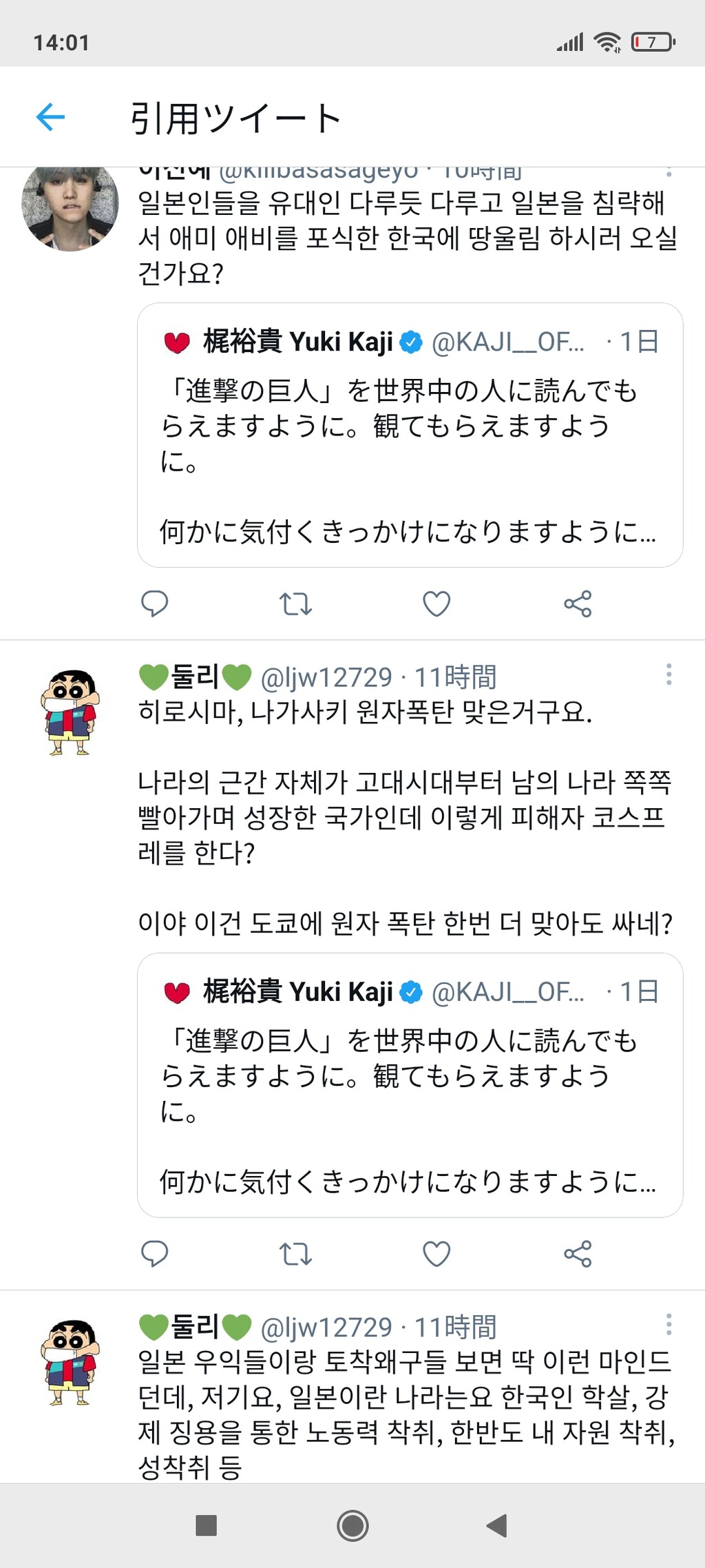梶谷貴「進撃の巨人を世界中の人々に読んでもらえますように」←何故か韓国アカウントが叩きまくる