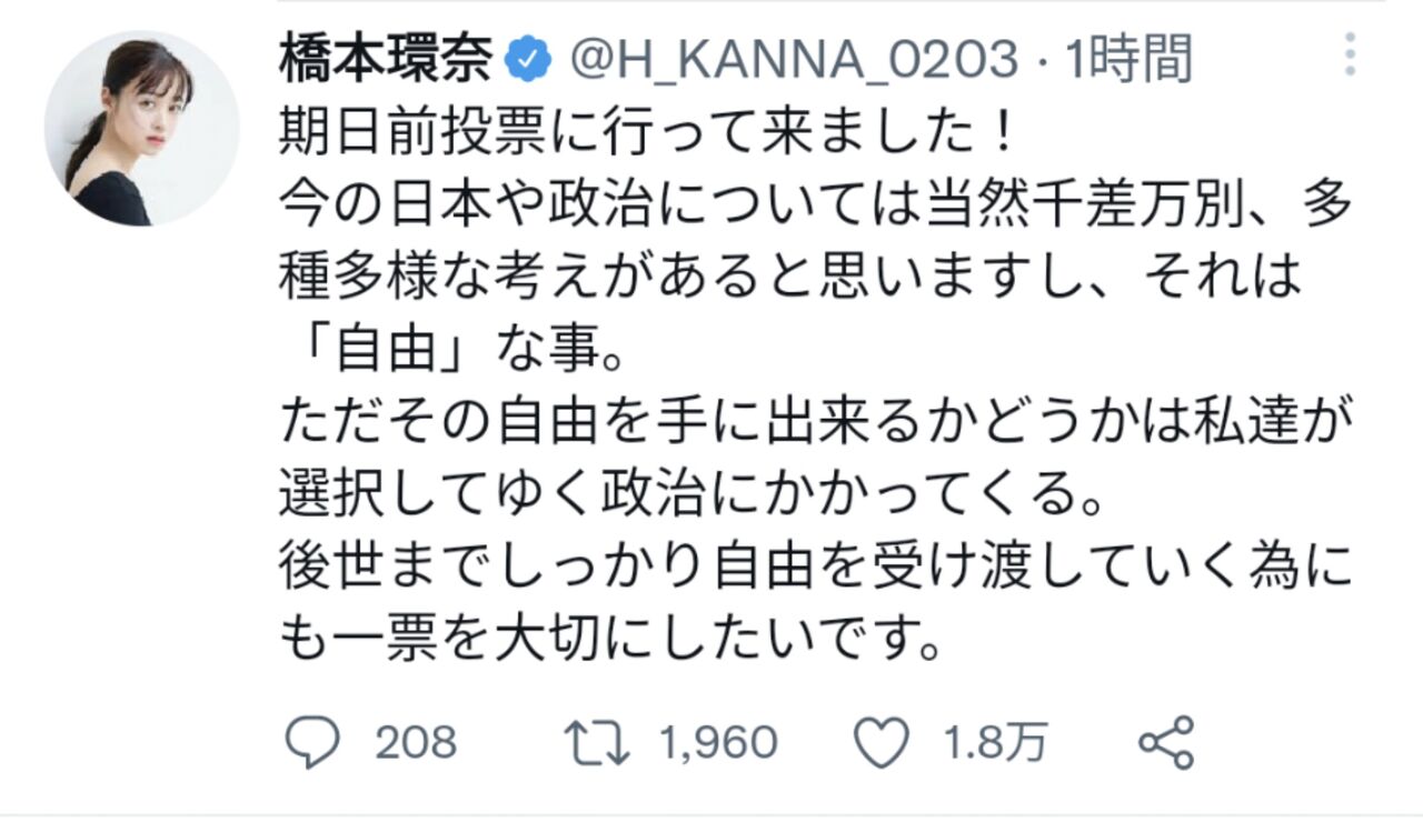 橋本環奈の最新ツイートが不自然すぎるんだが