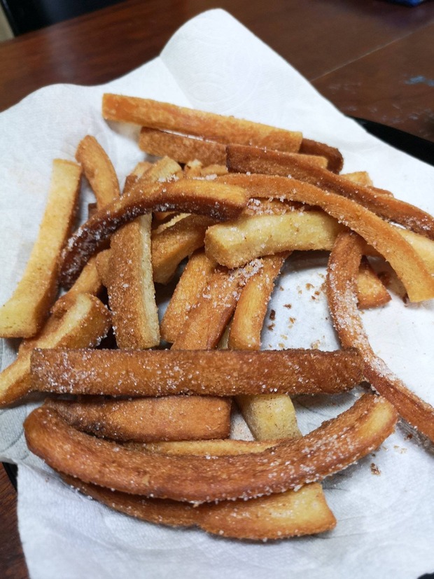 無料で貰ってきたパンの耳を揚げて砂糖まぶしたやつ(´;ω;`)