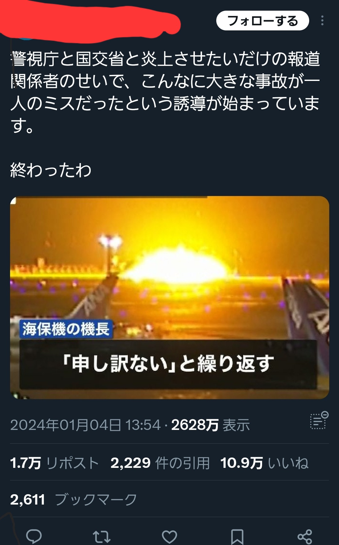 海保擁護民「管制塔が悪い!日航機が悪い!」機長「私のせいです」擁護民「…」