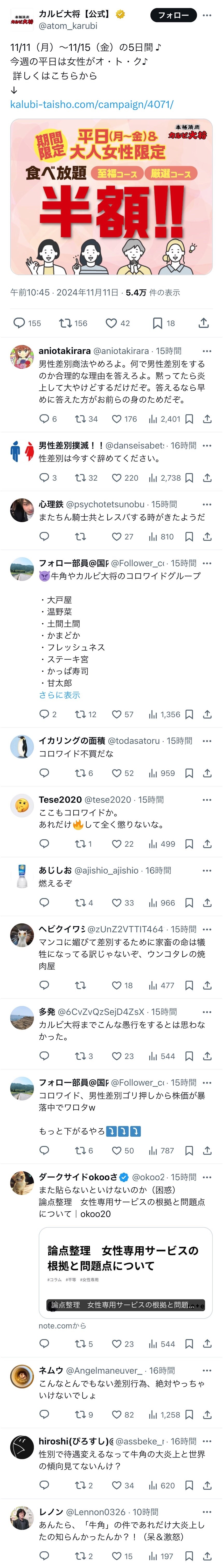 焼肉屋、またもや女性半額キャンペーンで弱男を怒らせてしまう