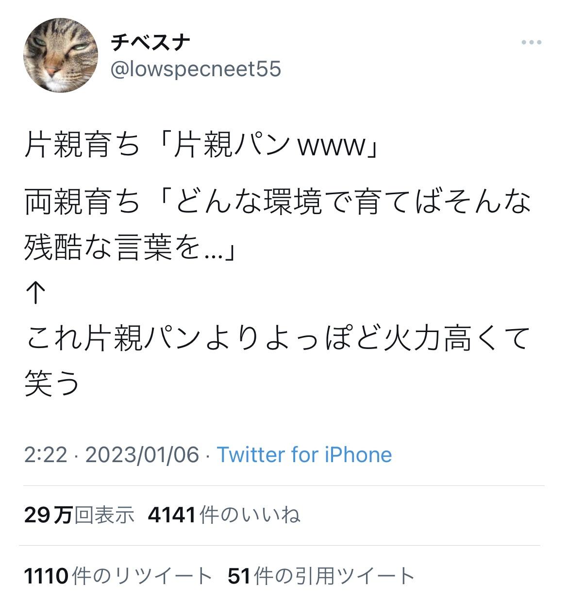 片親育ち「片親パンwww」両親育ち「どんな環境で育てばそんな残酷な言葉が思い浮かぶんだろう…」