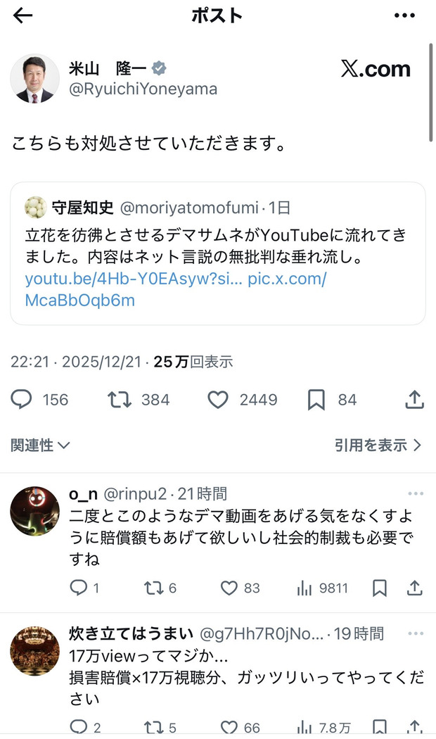 米山隆一氏から対処予告されたネトウヨ向けYouTubeチャンネル、動画非公開にしてとんずらwwwwwwwwwwww