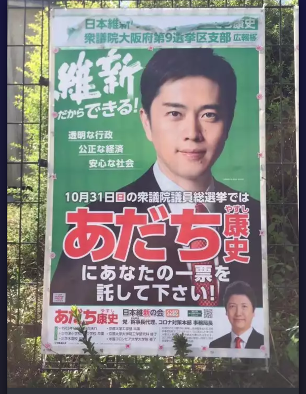 日本維新の会・足立康史前衆議院議員(大阪9区)の選挙ポスターがネット上で物議を醸している。(省略)全文https://news.yahoo.co.jp/articles/21c16689ea47ae672f86e108aa6175f439889bbe転載元スレッド:http://hayabusa3.2ch.sc/test/read.cgi/news/1635163736/