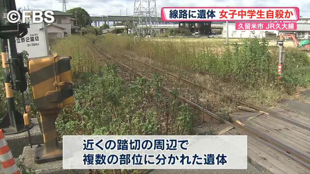 2021.10.23 17:43 FBS福岡放送23日午前、福岡県久留米市のJR久大線で女子中学生の遺体がみつかりました。警察は自殺とみて調べています。(省略)全文