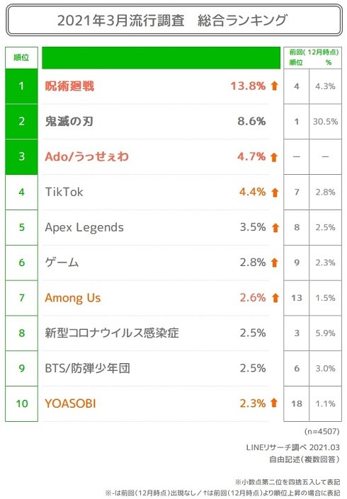 2 : 風吹けば名無し :2021/04/19(月) 01:30:44.27 ID:Pmx3oBAr0LINEリサーチは、全国の15~24歳の若年層の男女を対象にした「最近流行っているコト・モノ・ヒト」調査を発表した。以下、一部内容を紹介する。(省略)全文https://news.yahoo.co.jp/articles/eb14485bf46fcadc97ad0efb96538aa22828c91d転載元スレッド:https://swallow.5ch.net/test/read.cgi/livejupiter/1618763428/続きを読む
