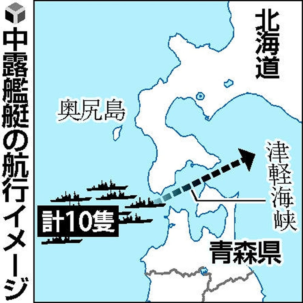 中国とロシアの艦艇10隻、津軽海峡を通過…同時航行は初の確認