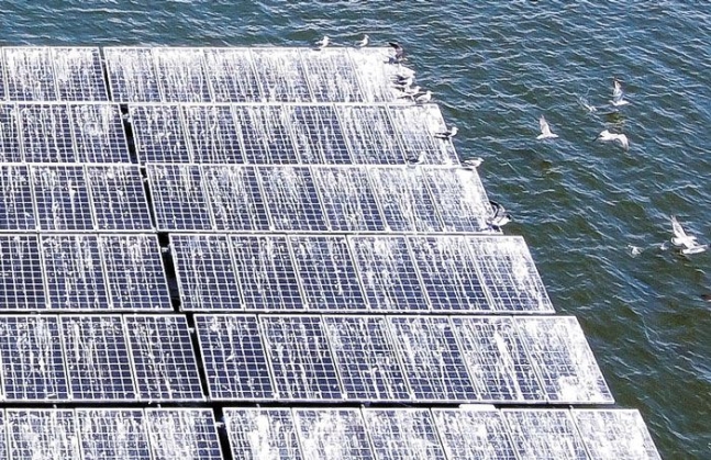 鳥のふんまみれになったセマングム湖の太陽光発電 /群山数百枚のパネルが真っ白に、環境に優しいと評判も鳥の排せつ物には弱し