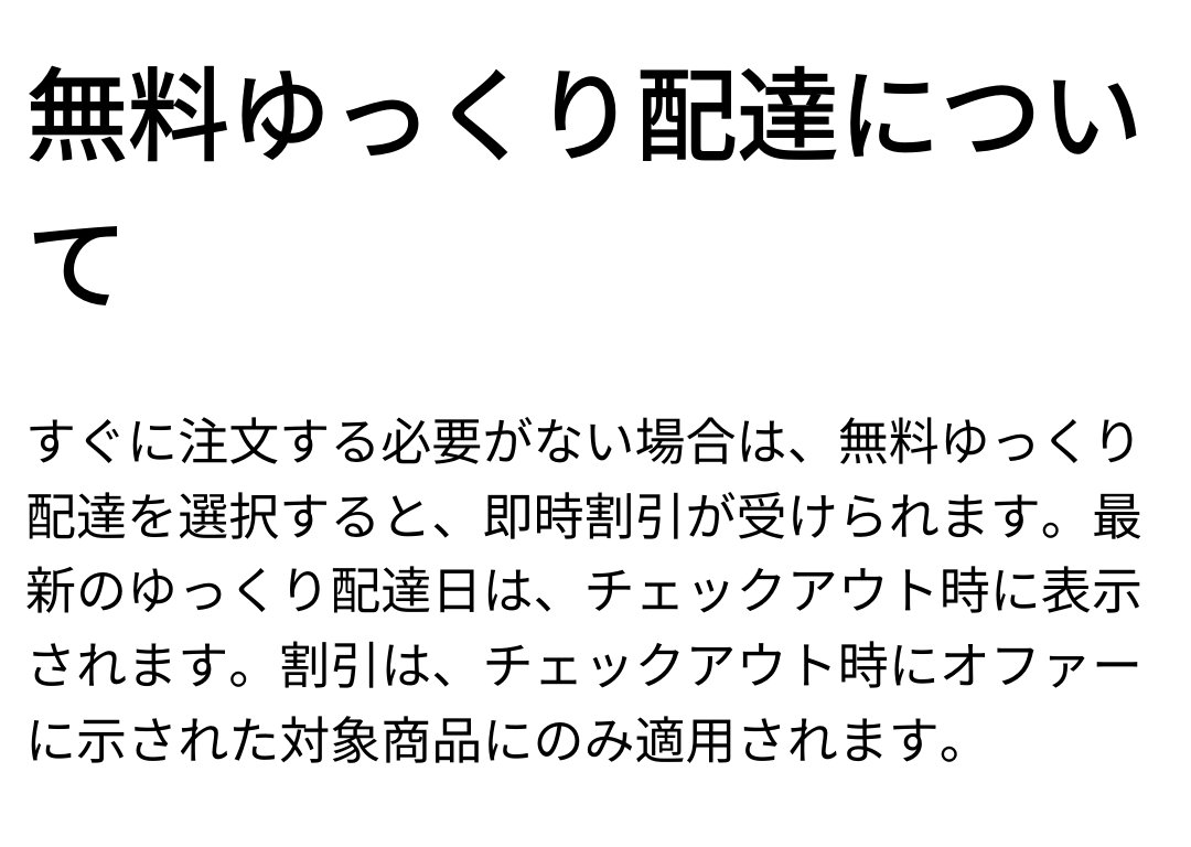 Amazonの配送オプションに「ゆっくり便」ってのが増えてた、1%OFFになるらしい。セールとかで安くなってるときにストック品をまとめ買いするときとかにいいかも。「 無料ゆっくり配達についてすぐに注文する必要がない場合は、無料ゆっくり配達を選択すると、即時割引が受けられます。」 pic.twitter.com/t2DPWcNH1v— tktk (@tktktw) January 31, 2025 2 名前:名無しさん@おーぷん[] 投稿日:25/02/02(日) 08:06:57 ID:79an舐めすぎやろ奴隷なんだから寝る時間削っても運べ3 名前:名無しさん@おーぷん[] 投稿日:25/02/02(日) 08:07:36 ID:iOLy>>2それでも無理なレベルに達しとるんやろ6 名前:名無しさん@おーぷん[] 投稿日:25/02/02(日) 08:08:09 ID:a5UFせめて5パーくらいにして欲しかった感ある1%しか引いてくれないなら危険を冒してでもアリエクみたいなサイト使ったほうがいいじゃんってなるやつもおるやろ続きを読む